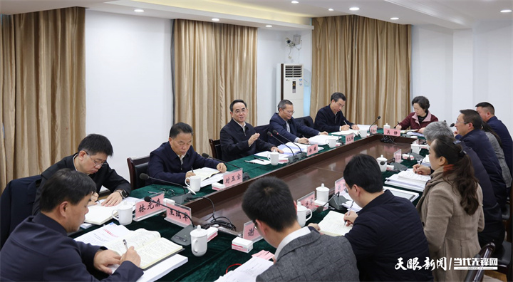图为徐麟主持召开座谈会,听取建立乡镇(街道)履职事项清单工作情况汇报。