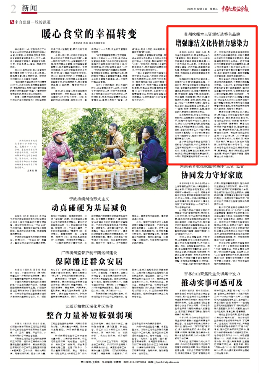 《中国纪检监察报》、中央纪委国家监委网站|贵州挖掘本土资源 打造特色品牌增强廉洁文化传播力感染力