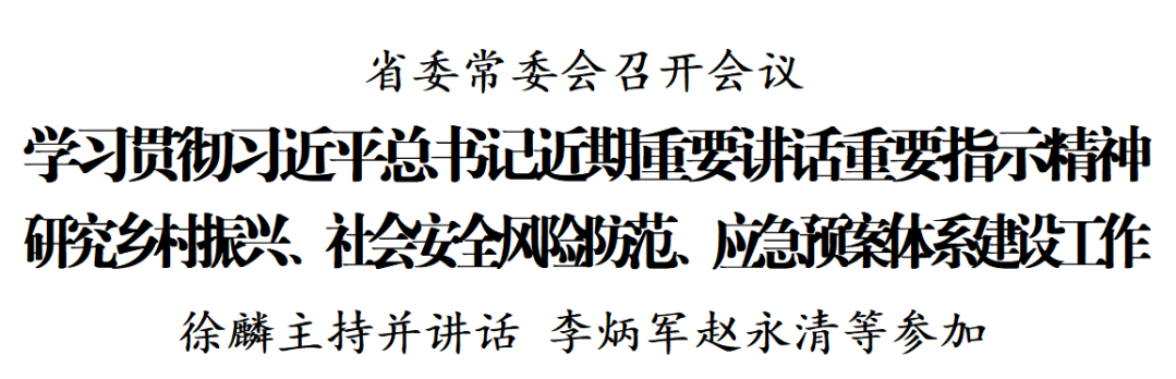 11月22日,省委常委会召开会议,学习贯彻习近平总书记近期重要讲话重要指示精神,听取全省乡村振兴工作情况、社会安全风险防范情况、应急预案体系建设情况汇报,研究部署相关工作。