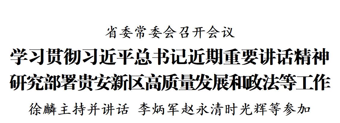 会议指出,习近平总书记在河北雄安新区考察并主持召开高标准高质量推进雄安新区建设座谈会时的重要讲话,高瞻远瞩、思想深邃、内涵丰富,对我省抓好开发区建设管理工作,加快推动贵安新区高质量发展具有重要指导意义。全省上下要紧密结合贯彻习近平总书记视察贵州重要讲话精神和对贵安新区的重要指示要求,认真对标对表,狠抓落地落实。要把建设贵安新区作为省之大计、贵州大事,以强烈的政治责任感、历史使命感、发展紧迫感,坚定信心、奋起直追,充分调动各方面积极性,全力把贵安新区打造成为西部地区重要经济增长极、内陆开放型经济新高地、生态文明示范区和统筹城乡发展的示范区。要高标准高质量推进贵安新区建设,坚持高端化、绿色化、集约化,聚焦重点、精准发力,锚定功能定位,强化规划引领,加快畅通贵阳贵安交通互联,强化龙头企业带动,加大招商引资力度,奋发有为开创贵安新区高质量发展新局面。要全面落实创新驱动发展战略,推动全省各领域改革开放前沿政策措施和具有前瞻性的创新试点示范项目优先在贵安新区落地,加快把贵安新区打造成为全省创新中心。要优化健全贵安新区领导体制和管理机制,强化统筹管理,着力构建运转高效、执行有力的运行机制。要坚持人民城市人民建、人民城市为人民,加快实现城乡融合发展,着力提升公共服务质量和水平,让人民群众从新区建设发展中感受到实实在在的获得感、幸福感。要持续纠治“四风”,一体推进不敢腐、不能腐、不想腐,大力营造务实、廉洁、高效的环境。
