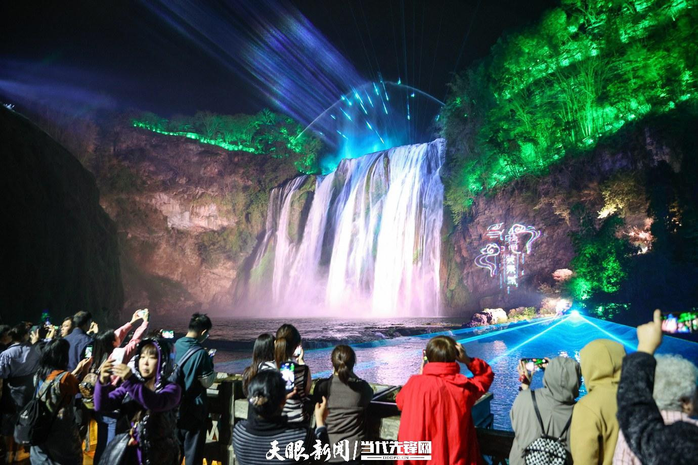 夜游黄果树项目,以黄果树大瀑布为核心,依托民俗文化、自然景观,借助多种现代演艺科技手段,通过绚丽的光影,让黄果树大瀑布夜间景致焕发出与日间不同的别样魅力。