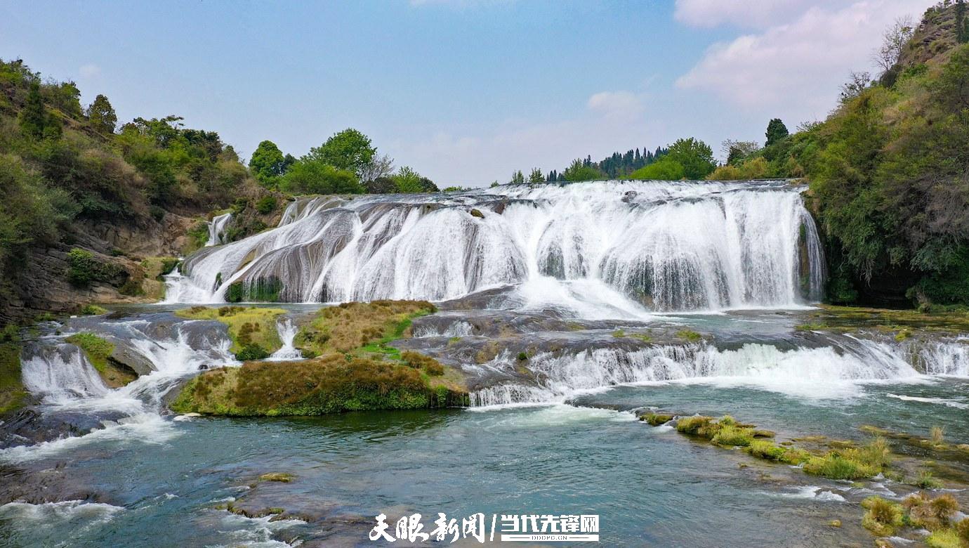 陡坡塘瀑布位于黄果树瀑布上游1公里处,瀑顶宽105米,高21米,是黄果树瀑布群中瀑顶最宽的瀑布。是1983年版西游记片尾曲《敢问路在何方》拍摄地。