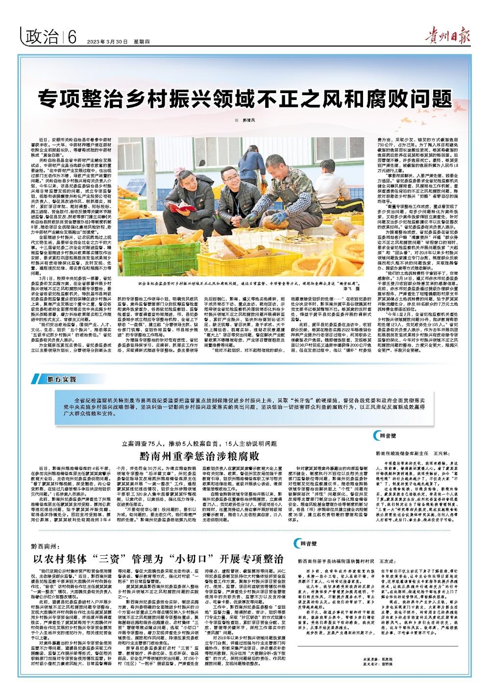 《贵州日报》头版、“党风廉政”专版|专项整治乡村振兴领域不正之风和腐败问题