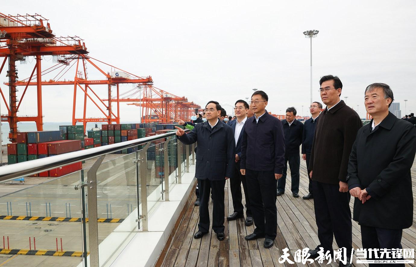 贵州省党政代表团在钦州港自动化集装箱码头学习考察。