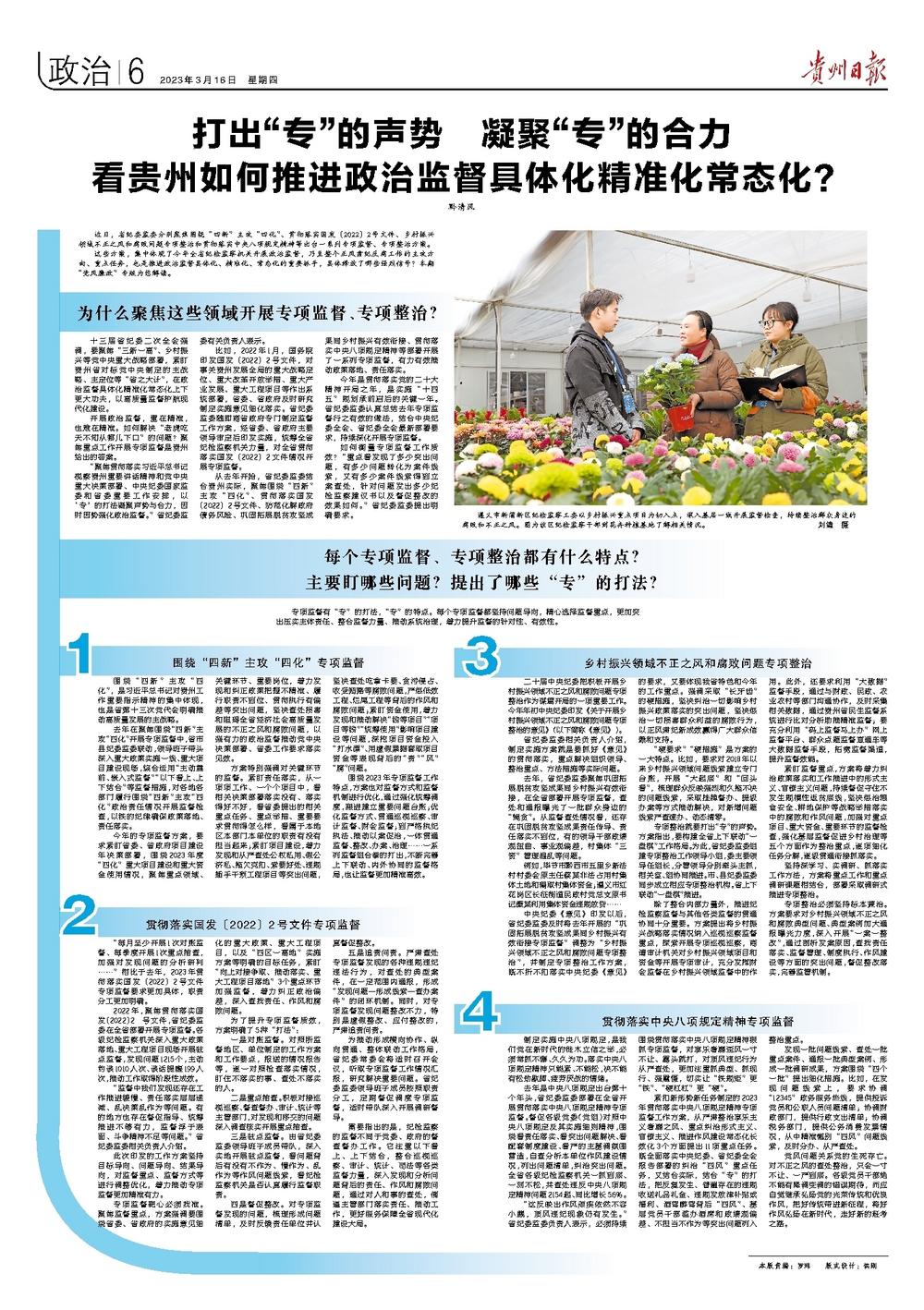 《贵州日报》“党风廉政”专版|打出“专”的声势 凝聚“专”的合力 看贵州如何推进政治监督具体化精准化常态化?