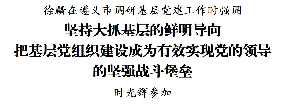 2月2日,省委书记、省人大常委会主任徐麟深入遵义市桐梓县、汇川区调研基层党建工作。他强调,要深入学习贯彻党的二十大精神和习近平总书记视察贵州重要讲话精神,衷心拥护“两个确立”、忠诚践行“两个维护”,全面落实新时代党的建设总要求和新时代党的组织路线,坚持大抓基层的鲜明导向,切实扛好主责、抓好主业、当好主角,统筹加强各领域基层党组织建设,增强党组织政治功能和组织功能,把基层党组织建设成为有效实现党的领导的坚强战斗堡垒,以高质量党建引领高质量发展。省委副书记、省委政法委书记时光辉,省领导李睿、时玉宝、陈少波参加调研。