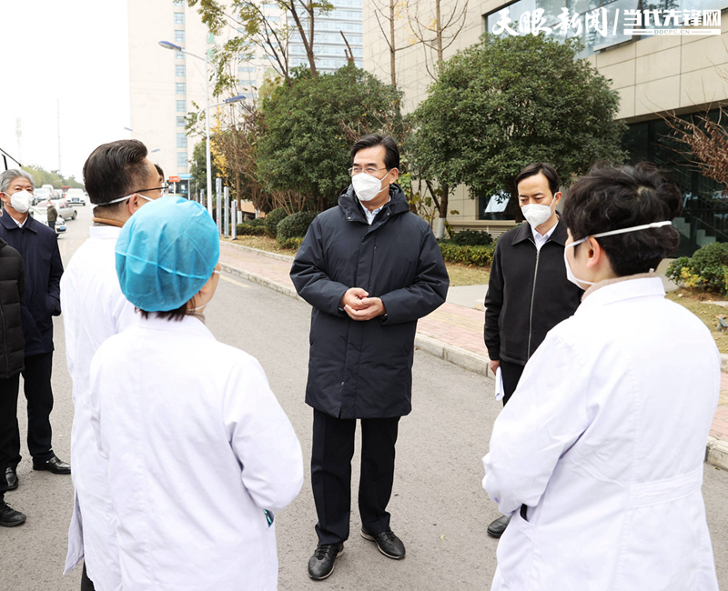 在贵阳市第一人民医院龙洞堡院区,李炳军认真听取发热门诊接诊、阳性患者收治和医院救治能力提升等情况汇报