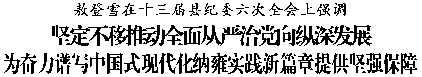 敖登雪指出,习近平总书记在二十届中央纪委五次全会上的重要讲话,具有很强的政治性、思想性和指导性,为深入推进全面从严治党提供了根本遵循。中央、省、市纪委全会对今年纪检监察工作作出系统部署。全县上下要切实把思想和行动统一到习近平总书记重要讲话精神和党中央决策部署上来,认真贯彻落实省委、市委、县委工作要求,以彻底的自我革命精神和更高标准、更实举措,持之以恒推进全面从严治党,为实现“十五五”时期目标任务提供坚强保障。