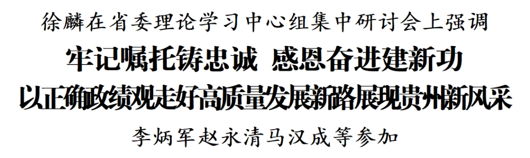 3月18日,省委召开理论学习中心组集中研讨会,重温习近平总书记去年考察贵州重要讲话精神,深刻感悟总书记对贵州各族人民的深情厚爱,牢记嘱托铸忠诚、感恩奋进建新功,以正确政绩观走好高质量发展新路、展现贵州新风采。