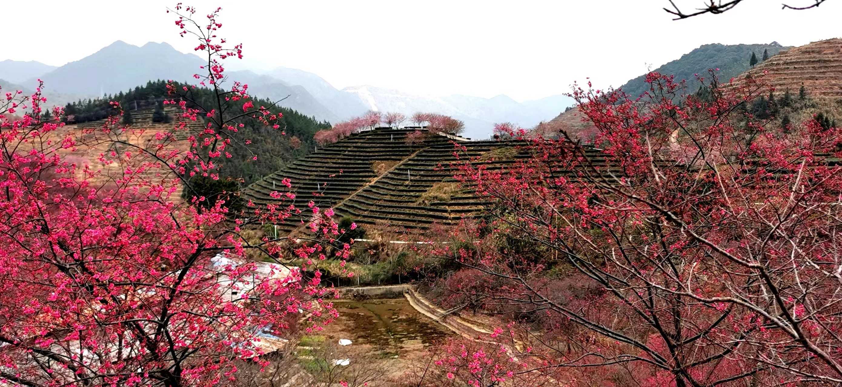 黔南州惠水县濛江街道苗咕噜茶场的桃花争相绽放,万紫千红、五色纷披,如一幅醉人的春色图。(黔南州惠水县纪委监委供 骆灵敏 摄)