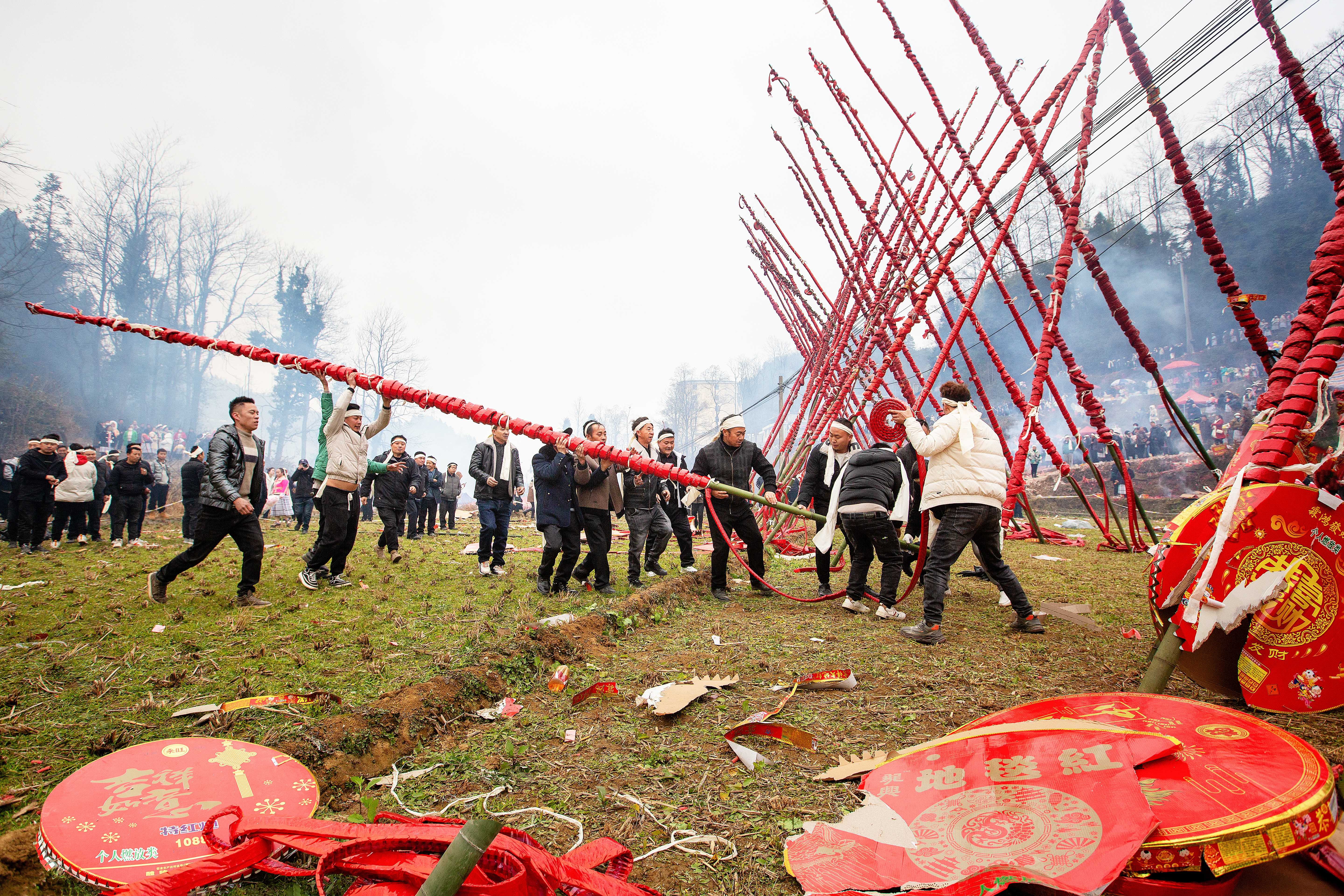 鸡爬田跳年场活动是省级非遗代表项目。在贵阳市清镇市麦格苗族布依族乡鸡爬田,来自全省十九个村寨的“四印”少数民族同胞聚集在此,共同祈福平安幸福。(贵阳市清镇市纪委监委供 朱进 摄)