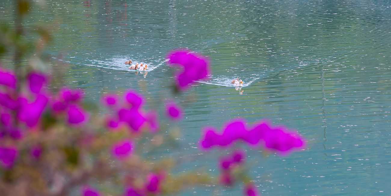 春江水暖鸭先知。随着天气慢慢回暖,河道两岸野花盛开,一群鸭子在水里追逐嬉戏,春的气息越来越浓。(黔西南州望谟县纪委监委供 韦汉国 摄)