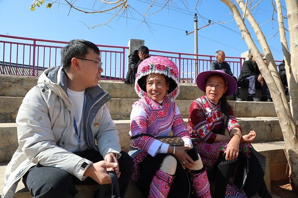 云南省文山市纪委监委春节专项督查组,紧盯乡村振兴工作中干部作风问题,持续深入整治形式主义、官僚主义问题。图为1月23日,该市纪检监察干部在马塘镇塘子寨村向群众了解情况。(云南省文山市纪委监委 王铭坚 摄)