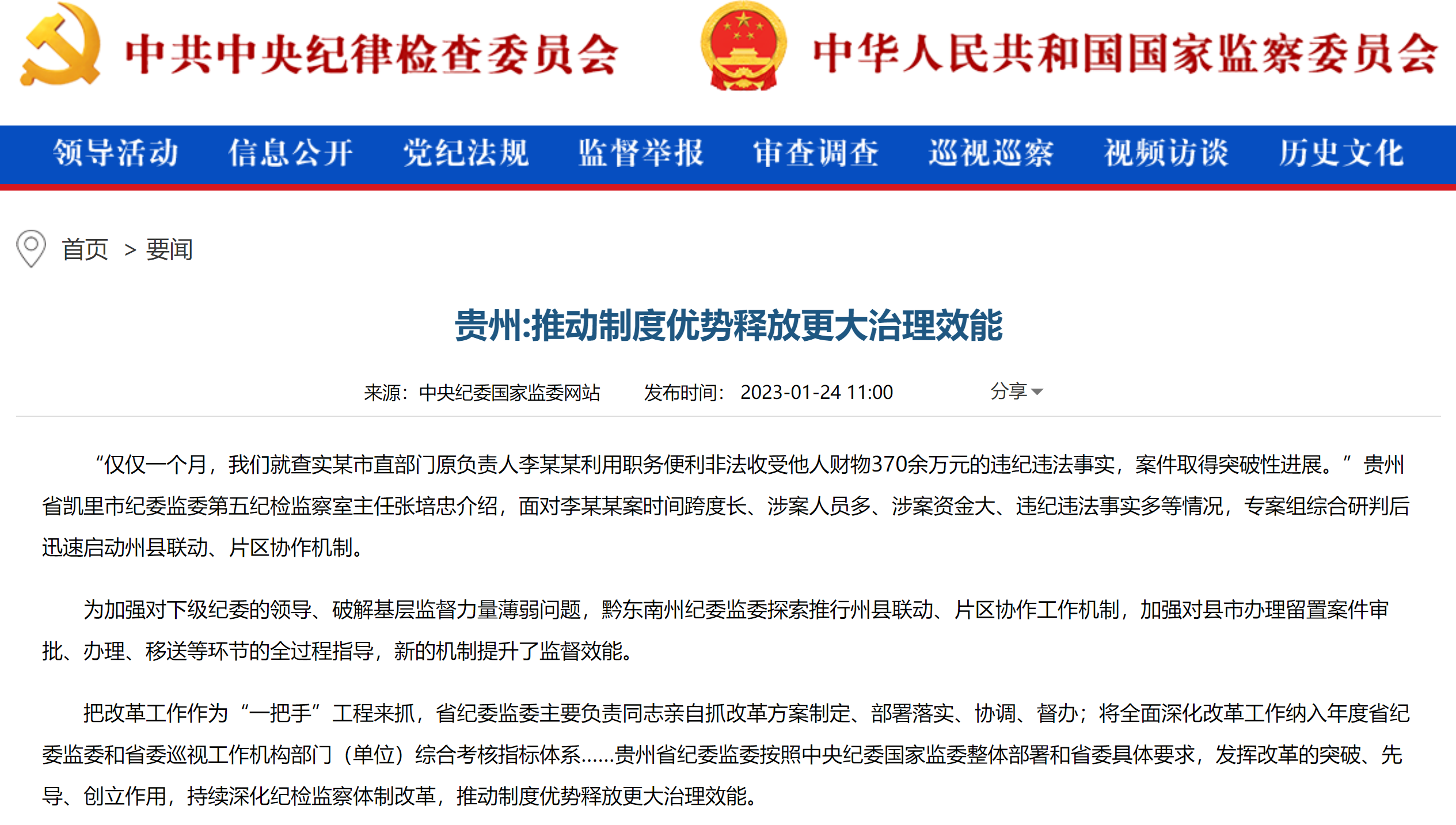 中央纪委国家监委网站 | 贵州:推动制度优势释放更大治理效能