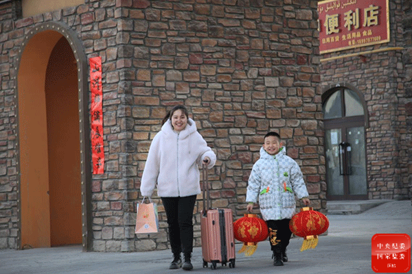 除夕将至,姐弟俩拎着大包小包,带着满满的欢喜和思念,回家给爷爷奶奶拜年。(新疆维吾尔自治区沙雅县纪委监委供 李欣 摄)