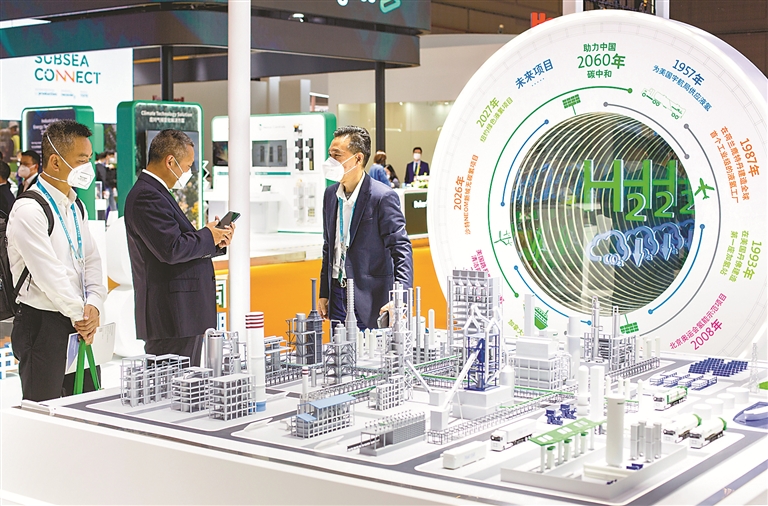 “零碳进博,零塑办博。”进博会不仅展示绿色创新前沿产品,更向着绿色展会的目标迈进。本届进博会筹办时就践行国家“双碳”发展战略,坚持“绿色、环保、可持续”办展方向,持续打造“零碳进博”。推进“碳中和”项目,引入碳普惠机制,实现绿色低碳价值传递和绿色搭建,增设绿色展台设计奖……进博会作为中国推进新一轮对外开放的重要平台,积极推动开展国际零碳与绿色合作,努力打造会展行业的“绿色”标杆。