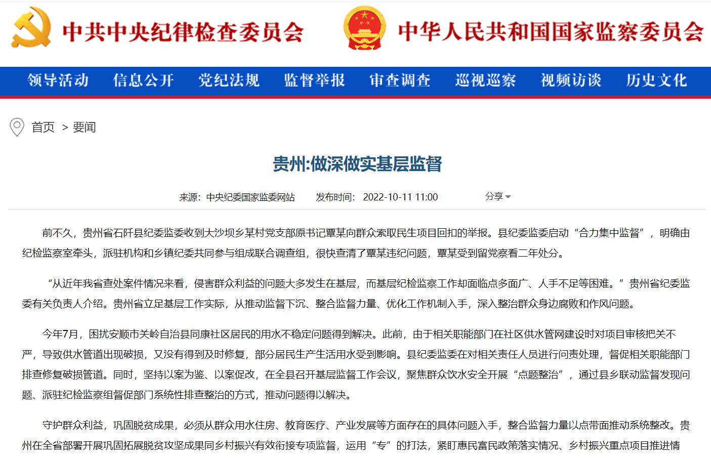中央纪委国家监委网站 | 贵州:做深做实基层监督
