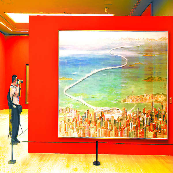 大美丹青绘就时代画卷。一幅幅作品生动展现党的十八大以来的重大成就、事件、活动、人物,穿梭于众多画作之间,仿佛置身祖国飞速发展的每一个现场,感怀时代巨变。步入美术馆一层圆厅,首先映入眼帘的是雕塑作品《旗帜》,以流畅富于韵律的线条,刻画了一面飘动的党旗,仿佛看到了党带领人民从站起来、富起来到强起来的光辉历程;油画《新生——浙里抗疫》吸引不少观众驻足,2020年初新冠病毒肆虐全球,正当人们感到不安和焦虑的时候,一位新冠肺炎孕妇成功诞下健康男婴,这新生像一道冲破阴霾的光芒,为人们带来了生命的鼓舞与希望。此外,中国首艘航空母舰“辽宁舰”交接入列,港珠澳大桥正式开通,神舟十二号载人飞行任务圆满成功……画面里,一件件国之重器、一个个辉煌成就接续起中国非凡十年的圆梦之路。