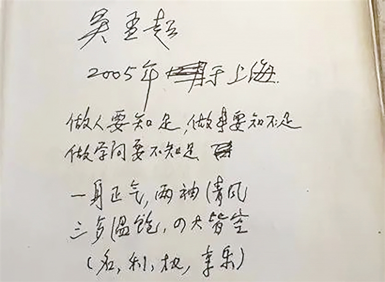 图为吴孟超2005年的日记扉页。日记中,他严于律己、淡泊名利的人生哲学跃然纸上。 新华社记者 袁全 摄
