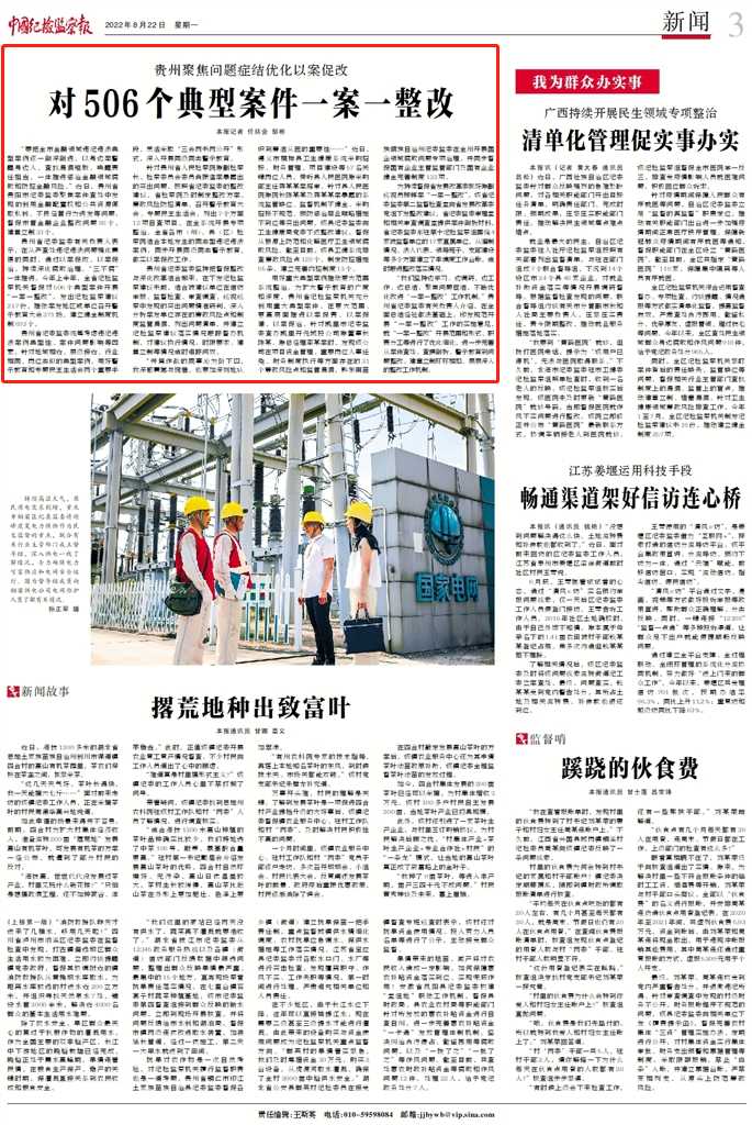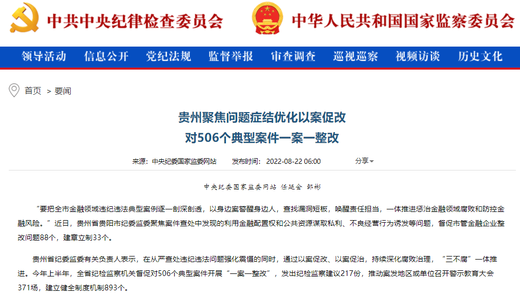 《中国纪检监察报》“新闻”版头条、中央纪委国家监委网站| 贵州聚焦问题症结优化以案促改 对506个典型案件一案一整改
