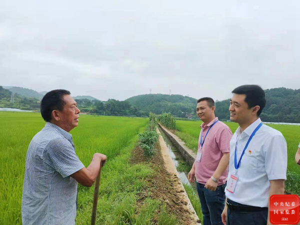 图为周剑和(右)在新田县中山街道潭田村核实惠农惠民财政补贴“一卡通”资金发放情况。唐健美 摄